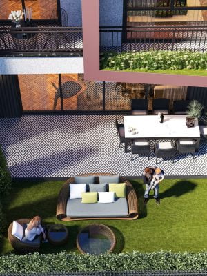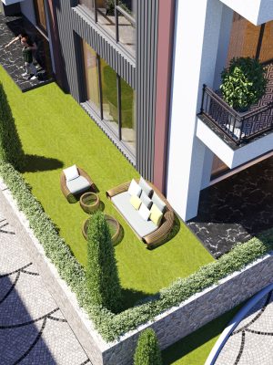 Bloklar arasında bulunan süs havuzu, özel peyzajı ve dış cephe tasarımı projeye estetik bir ihtişam kazandırıyor.